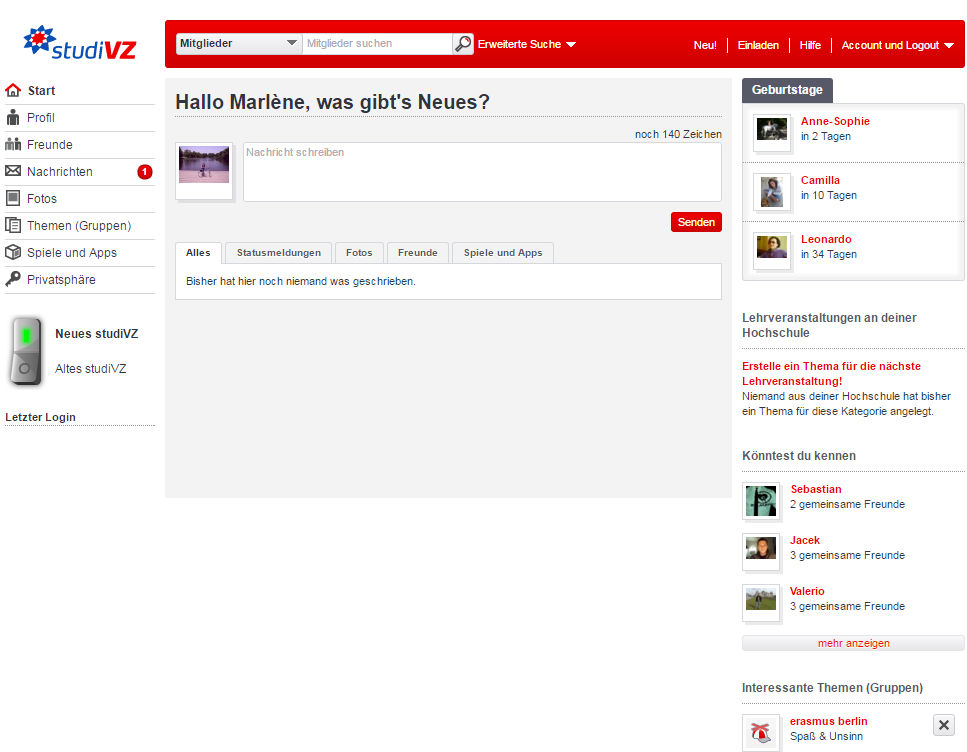 A présent, StudiVZ ressemble à un portail fantôme avec des mises à jour de profil datant de 2010 pour la grande majorité. C'est triste à voir.