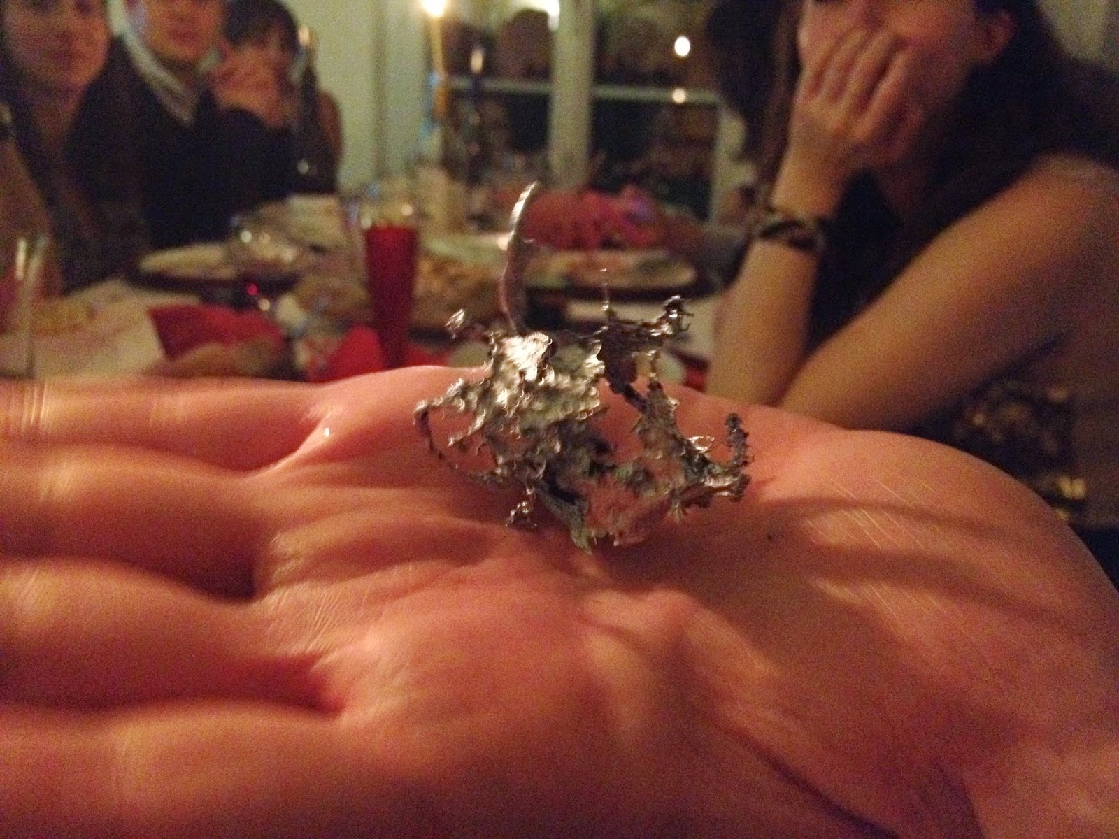 Bleigiessen, vous avez une cuillère et 6 à 8 petits plombs de formes