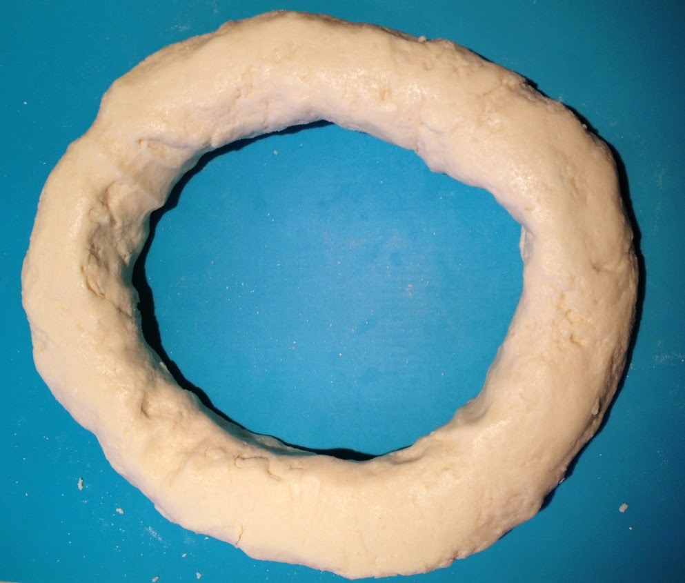 3) Faire un puits dans la farine et ajouter le mélange lait/oeuf. Pétrir